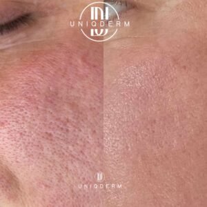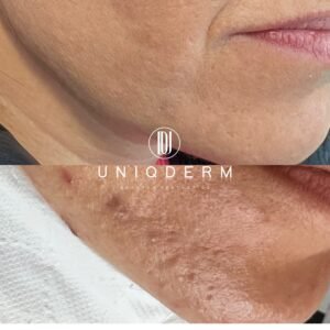 The fractional laser emits thousands of microscopic beams of light that create controlled micro-injuries in the skin. This process activates fibroblasts to produce new collagen and elastin – the proteins responsible for skin firmness, density, and elasticity. Meanwhile, the surrounding healthy tissue accelerates healing, which means faster recovery and spectacular rejuvenation effects.